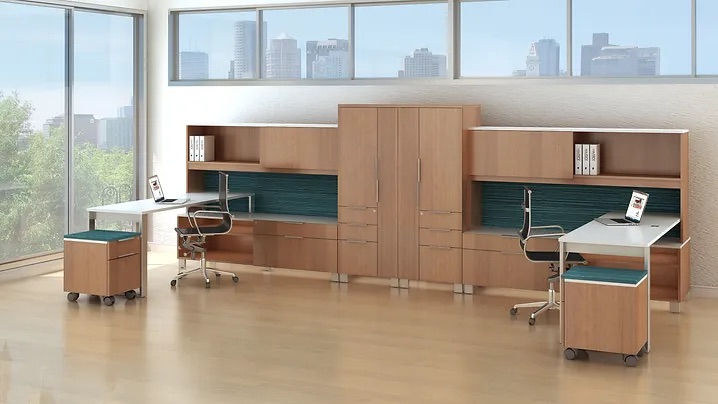 L-Shape Triple Workstation w/ Mobile BBF Pedestal & Storage Credenza